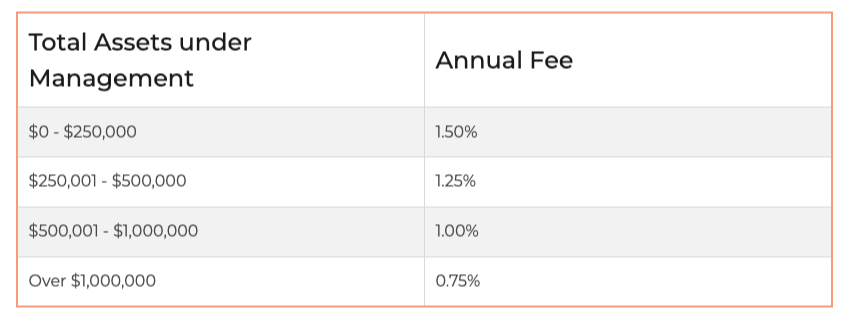 For example, the total fee for ongoing financial planning and management of a household with total invested assets of $1,500,000 would be as follows: